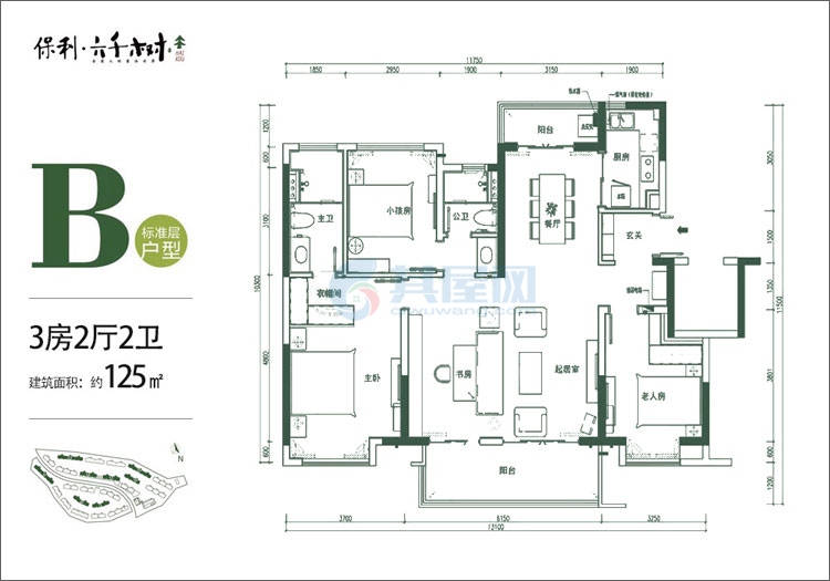 B户型-建面约125平-三房两厅(建筑面积:125㎡)
