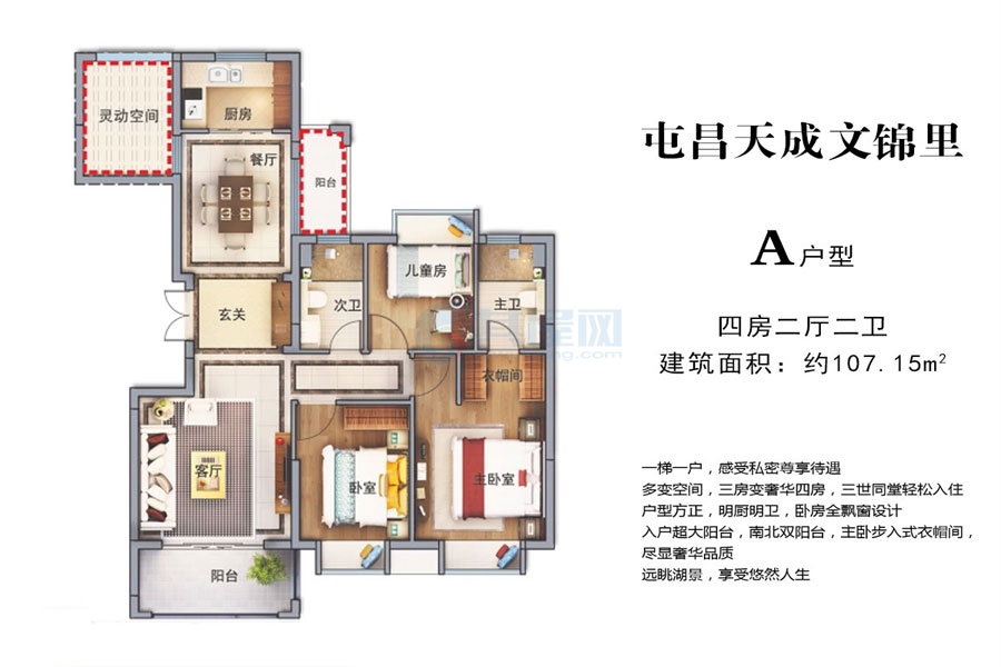 | 物 业 费: 1.50元/㎡·月 | 在售户型: 二居(建面47.76㎡)、 二居(建面53.06㎡)、 四居(建面104.68㎡) |
