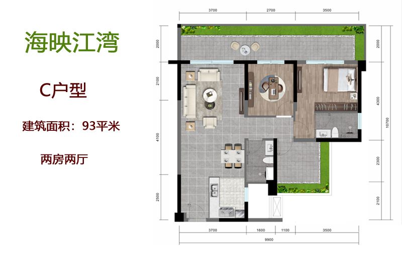 海映江湾C户型两房两厅建面93平米(建筑面积:㎡)