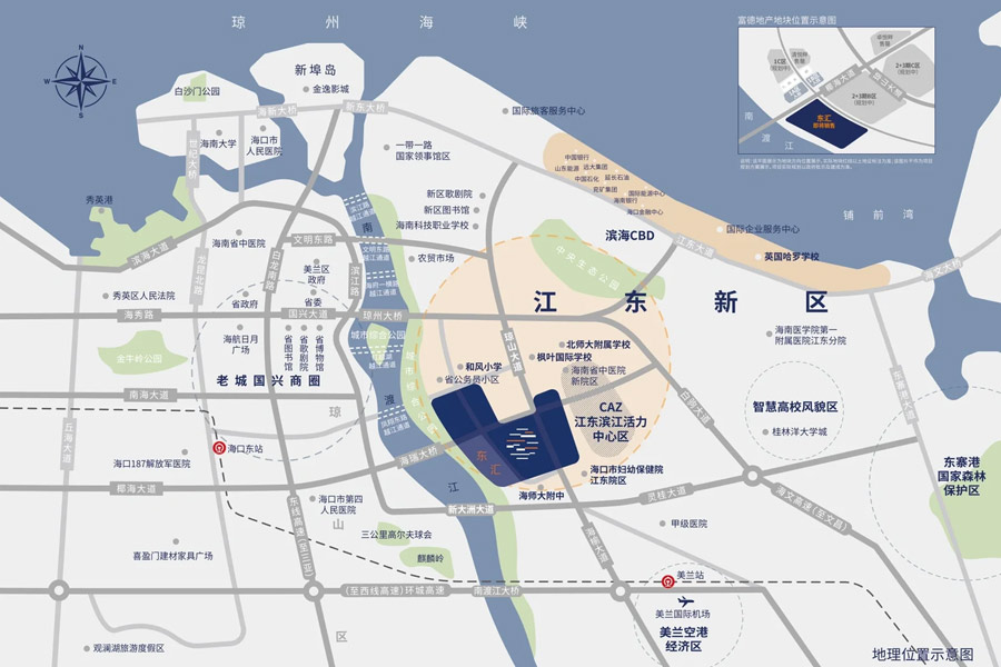 项目邻琼州海峡且东临文澜江,小区内部建设兰堂溪流经。海水、江水、溪水三种景观资源私享江海美景,亲水生活生态居住。