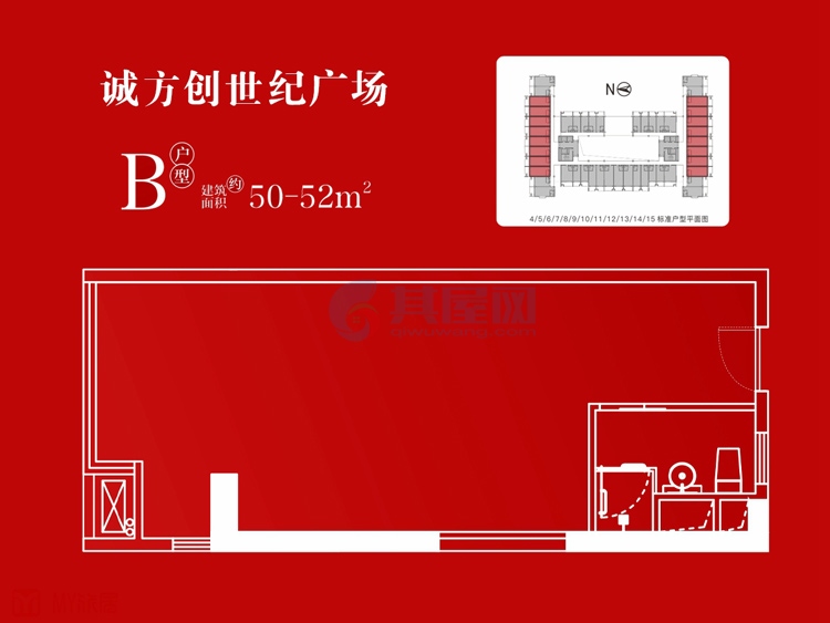 诚方创世纪广场SOHO,约40-52㎡小户型,准现房,层高5.25米,一口价95万/套起