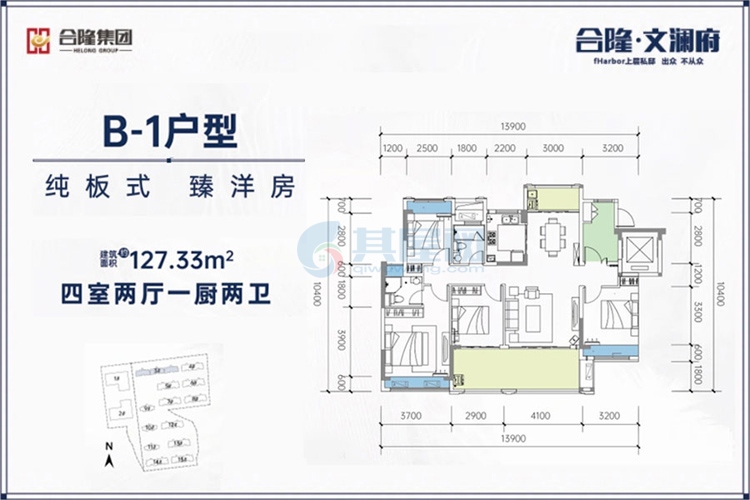 B-1户型-建面约127.33㎡-4室2厅2卫1厨