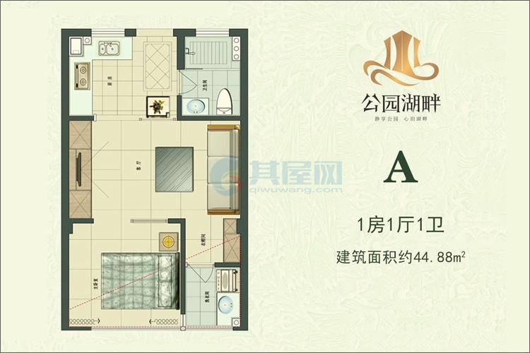 海南房产网新资讯:公园湖畔现房住宅在售,建面约44.88平米一房户型,总价130-132万/套。