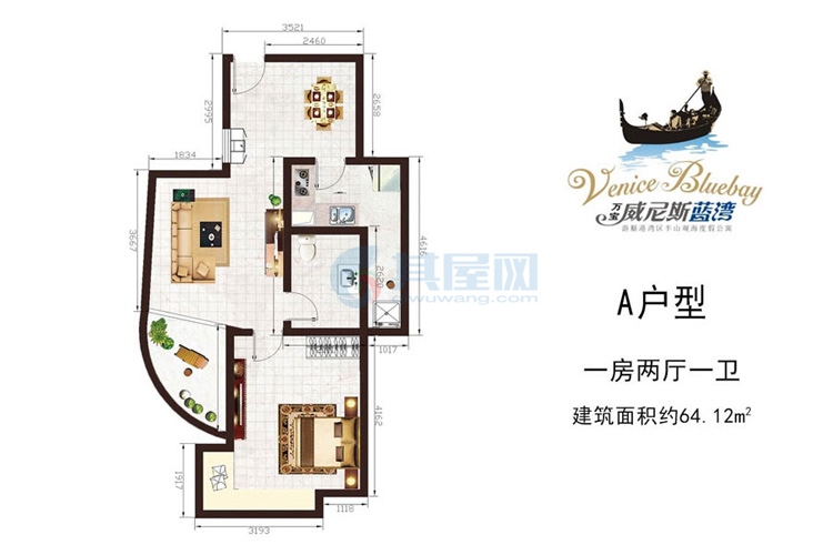 建筑面积约64㎡ 一房两厅一卫 顶跃 118㎡ 三房两厅两卫三阳台 134㎡ 三房两厅两卫双阳台