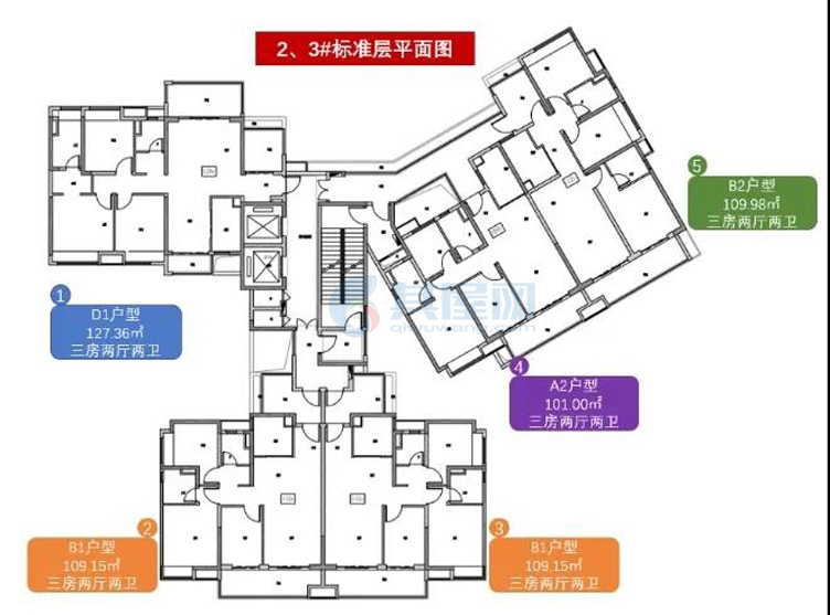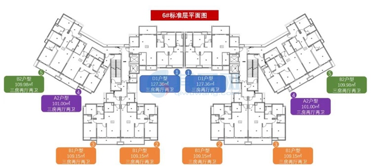 目前推售四种户型,面积为101、109、110、127㎡舒适三房两厅两卫。户型设计方正,布局合理,南北通透得房率高,自住、投资两相宜。