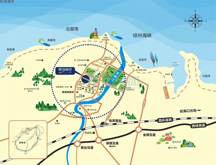 毗海澜湾项目距离海口约86公里,距离西线高速公路出口14公里,经西线高速可达各地市县,距离美兰机场约98公里,距离临高高铁南站9公里,交通异常便利。