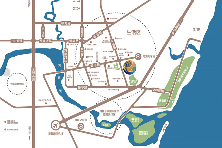 海城时代广场 售楼电话:0898-66681001 【规划用地】 约309.4亩 【总建筑面积】约521376㎡ 【总楼栋】21栋住宅、36栋商业、1栋酒店