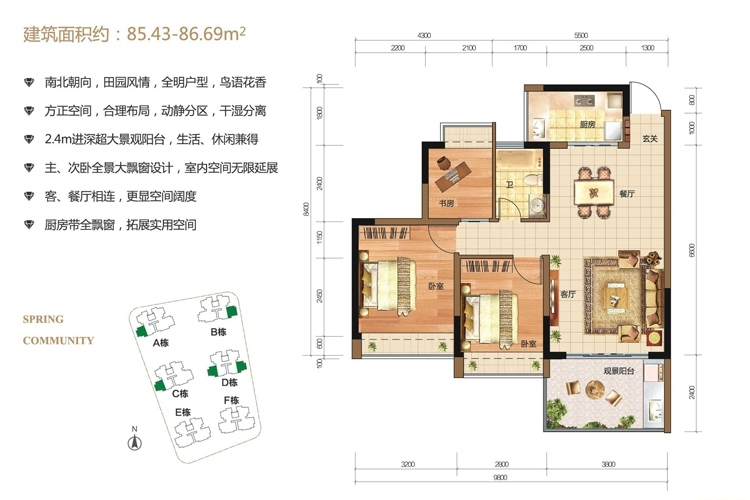 (建筑面积)80㎡(二居)、87.28㎡(三居)